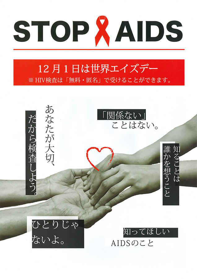 世界エイズデー(12月1日)啓発キャンペーン ホーム - 啓発キャンペーン - 世界エイズデー(12月1日) - 年度別ポスターコンクール - 令和7年度 審査結果 - 高校生の部 入賞者 小学生・中学生の部 高校生の部 一般の部 入賞者 - 高校生の部 画像をクリックして拡大できます。 最優秀賞 鳥山 暖心さん岐阜県立岐阜各務野高等学校 2年 . 優秀賞 後藤 知哉さん長崎県立波佐見高等学校 3年 佐藤 柚希さん香川県立高松東高等学校 2年 . 佳作 山口 恵奈さん香川県立高松工芸高等学校 1年 森下 璃乃さん神奈川県立白山高等学校 2年 河野 心佑さん宮崎県立佐土原高等学校 2年 . ポスターコンクール審査結果トップページに戻る